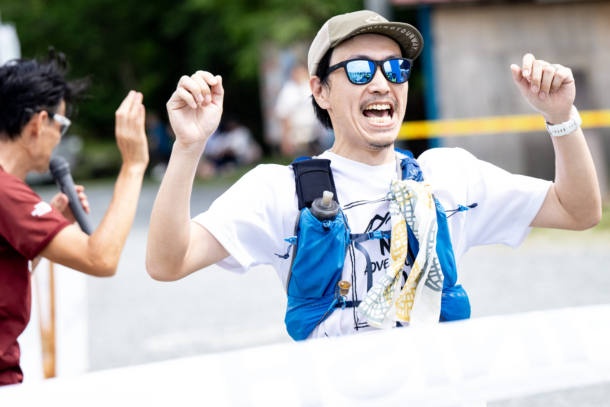 スタート時および各エイドステーションを出発するときには2.0ℓ以上の水分を持っていなければいけません。